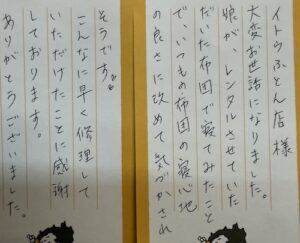 マットレスの修繕と一通の手紙(瀬戸市)